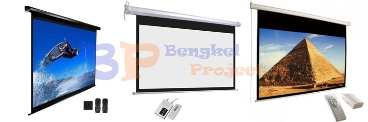 Bengkel Projector menyediakan berbagai screen projector (layar Proyektor) jenis motorized dengan berbagai merk dan ukurun screen. Screen motorized yaitu screen atau layar projector yang dapat di pasang di dinding atau di tembok yang terdapat sensor untuk diturunkan/ dinaikkan secara otomatis dengan mengunakan remote. Screen ini sudah di lengkapi dengan bracket sebagai tempat screen yang tergulung serta scroll sebagai penggulungnya.