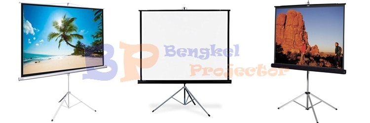 Bengkel Projector menyediakan berbagai screen projector (layar Proyektor) jenis tripod dengan berbagai merk dan ukurun screen. Screen tripod yaitu screen atau layar projector portable dengan menggunakan kaki tripod sebagai penyangga screen. Screen ini dapat digulung dan dibongkar pasang seingga memungkinkan untuk dipasang dimanapun atau berpindah-pindah. Screen jenis ini sangat praktis untuk digunakan pada kegiatan outdoor dan kegiatan yang berpindah-pindah tempat.